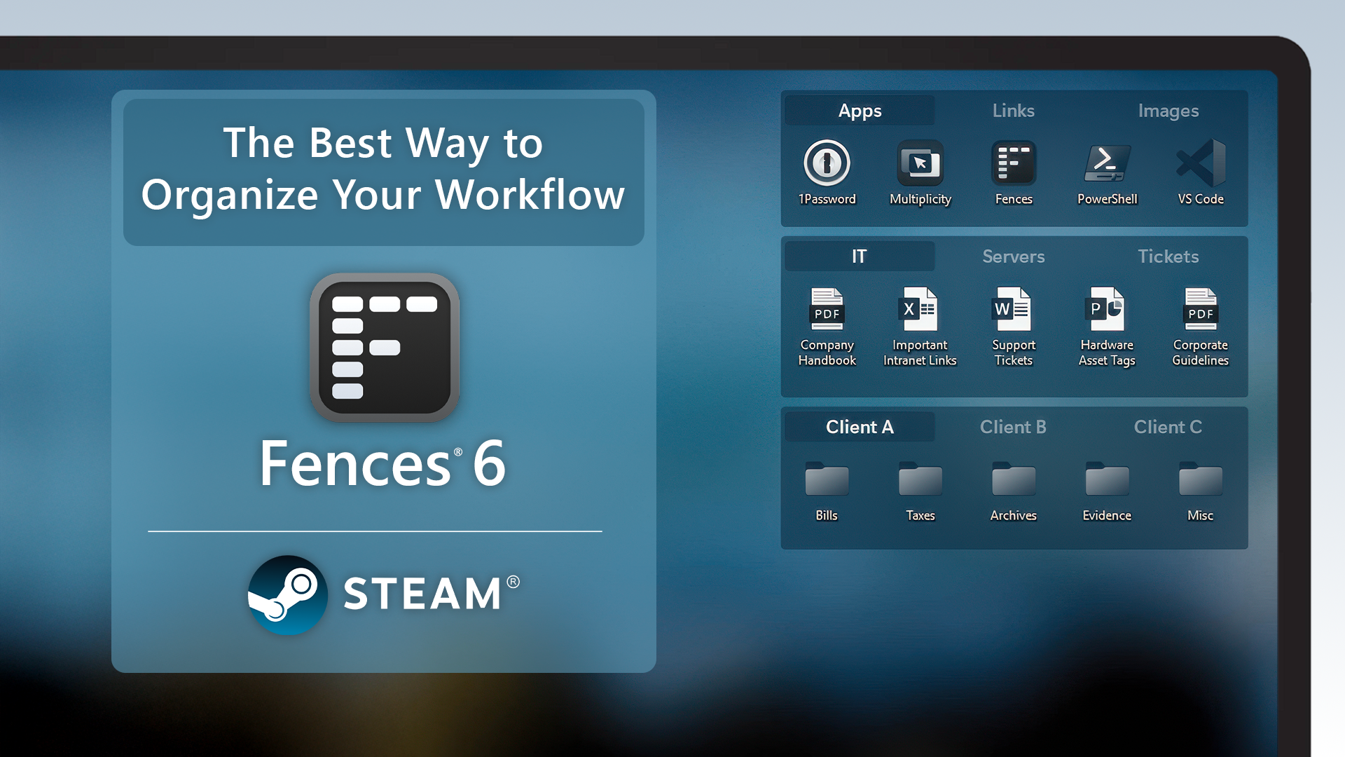 Today we are bringing the best desktop organizer for your Windows PC to Steam. Fences 6, with tabs, icon tint, and a lot more, is now available on for purchase on that platform.