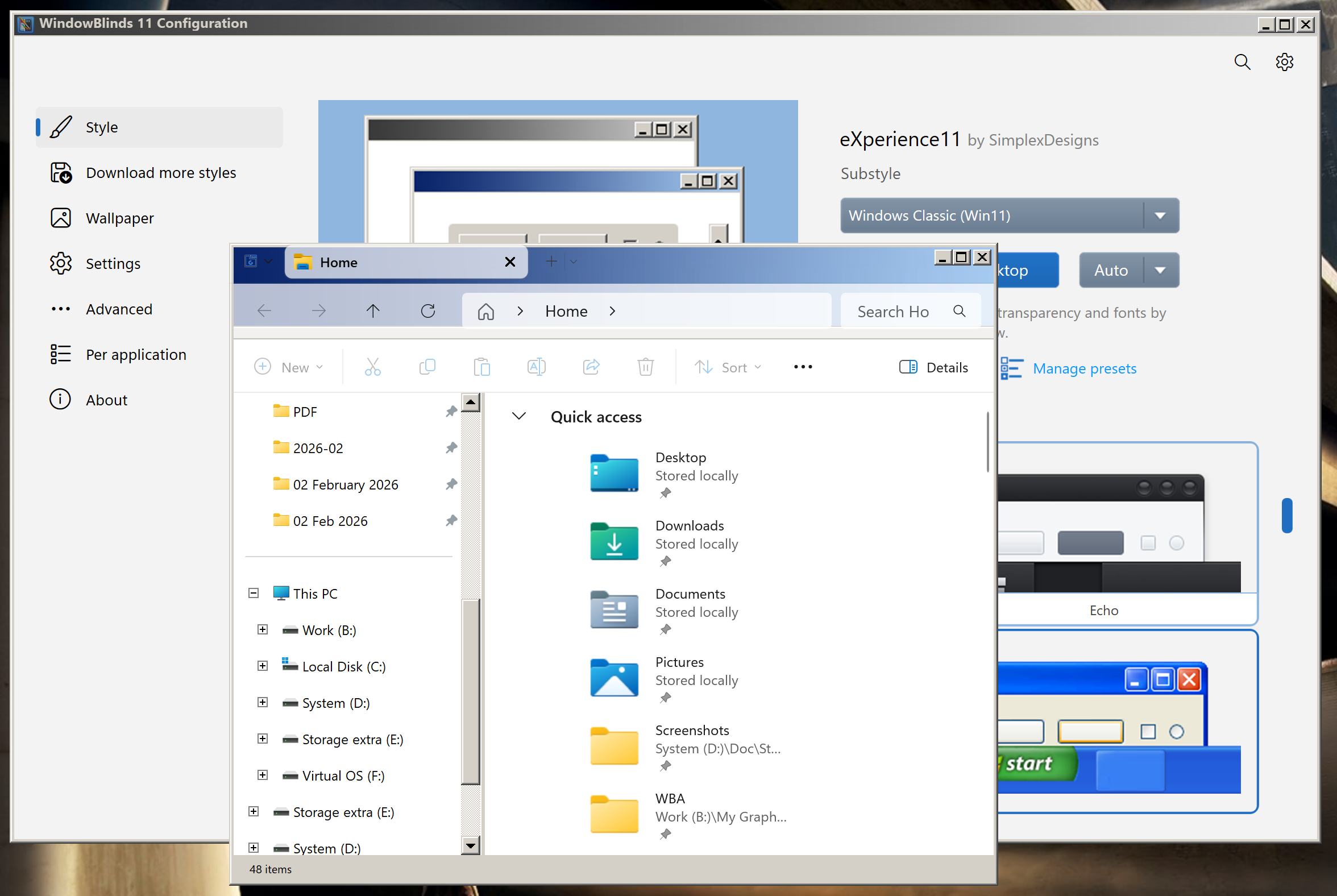 eXperience 11 theme: "Windows Classic (Win11)"